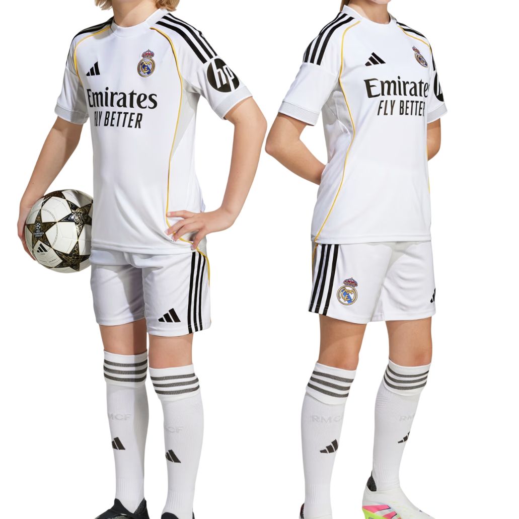 ADIDAS REAL H Y KIT EQUIP MADRID 25/26 1ª BLANCO/NEGRO/AMARILLO PARA NIÑOS