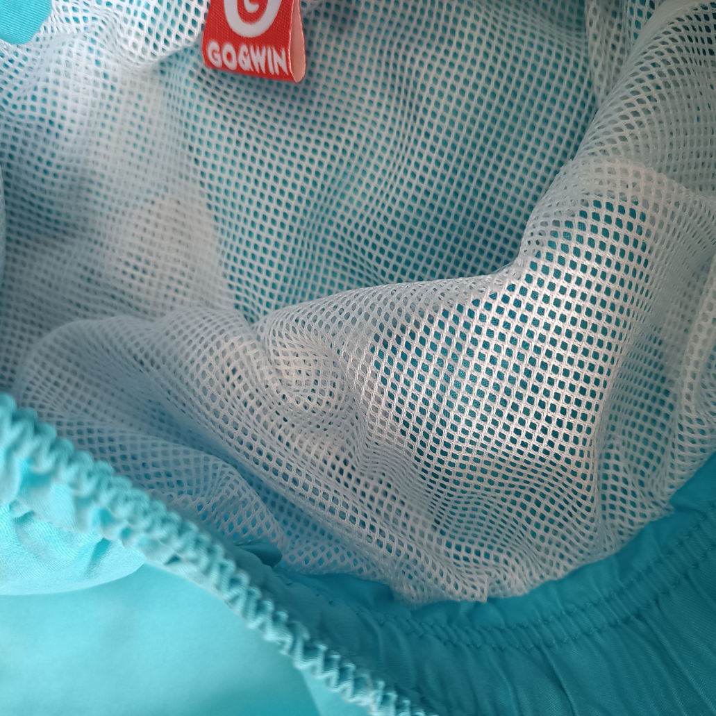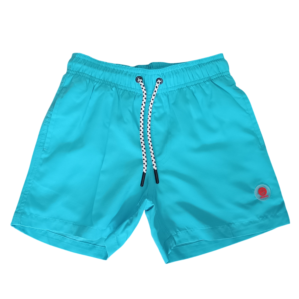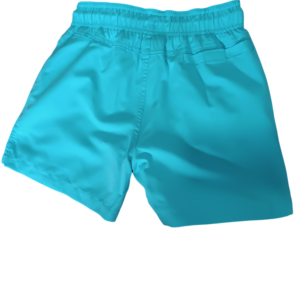 Bañador de niño en azul turquesa con cintura ajustable. Contiene redecilla