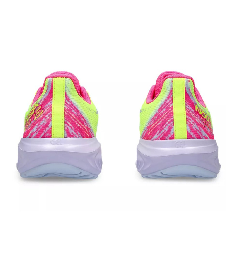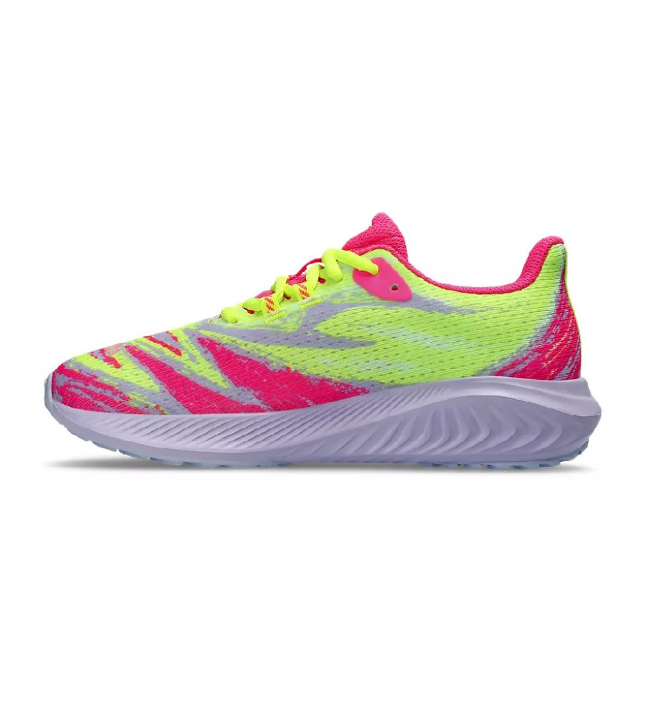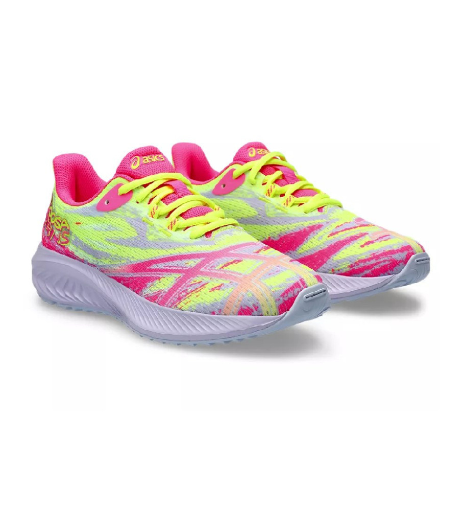 Los patrones de diseño de dibujo de nuestra zapatilla de triatlón insignia, GEL-NOOSA TRI™ 15 GS (Escuela primaria) canaliza la misma combinación de colores energéticos con un diseño técnico.