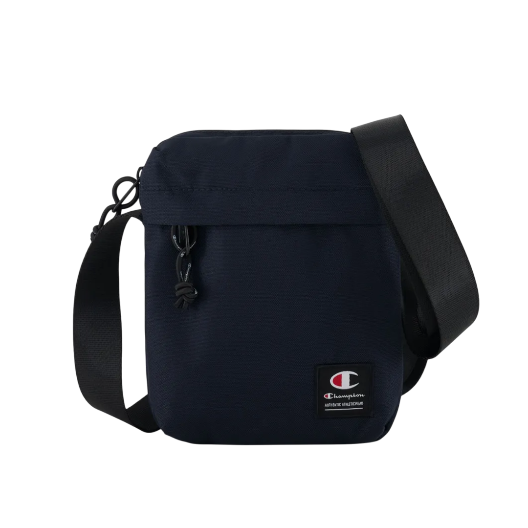 Bolso bandolera Champion marino para hombre, con diseño sencillo y etiqueta de jacquard. Perfecto para un look casual y funcional.