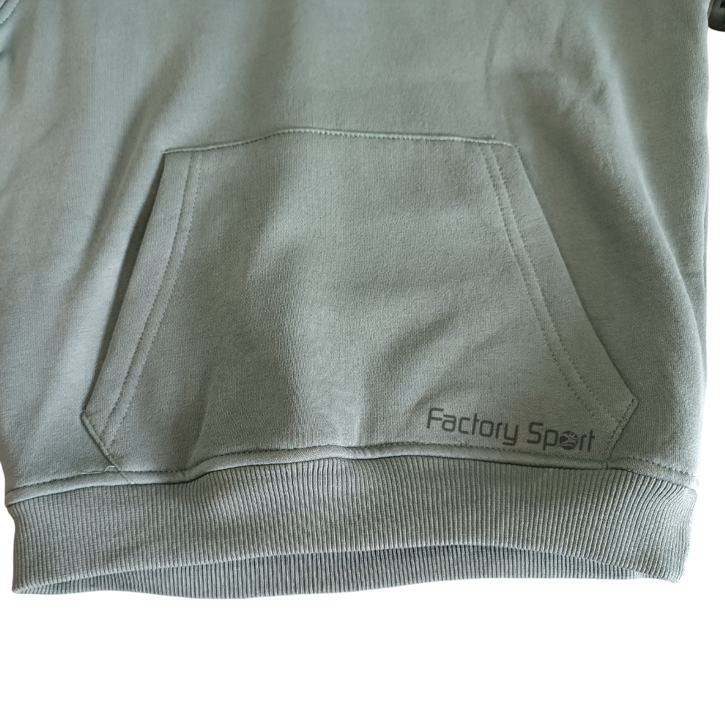 Sudadera de niño en color verde oscuro, con gorro y pelito por dentro, lo que la hace más calentita. Con puños para más comodidad