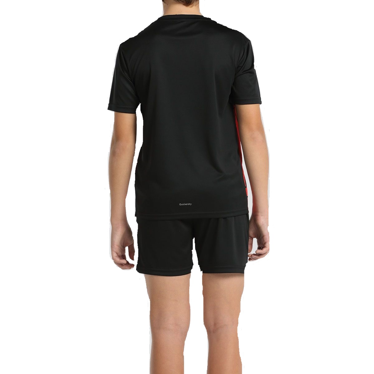 Conjunto de niño con camiseta de interlock poliéster, con gráfico en el delantero, y mangas, espalda y cuello a contraste.