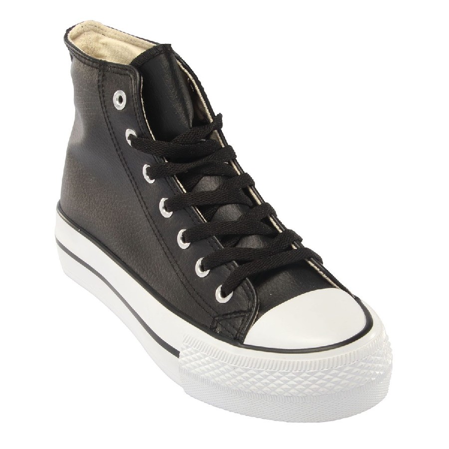 Suela vulcanizada de perfil alto, la plantilla con cuña adicional proporciona un confort extra en las construcciones vulcanizadas.