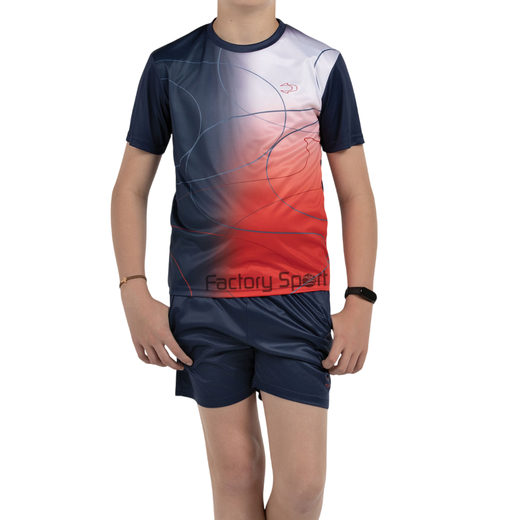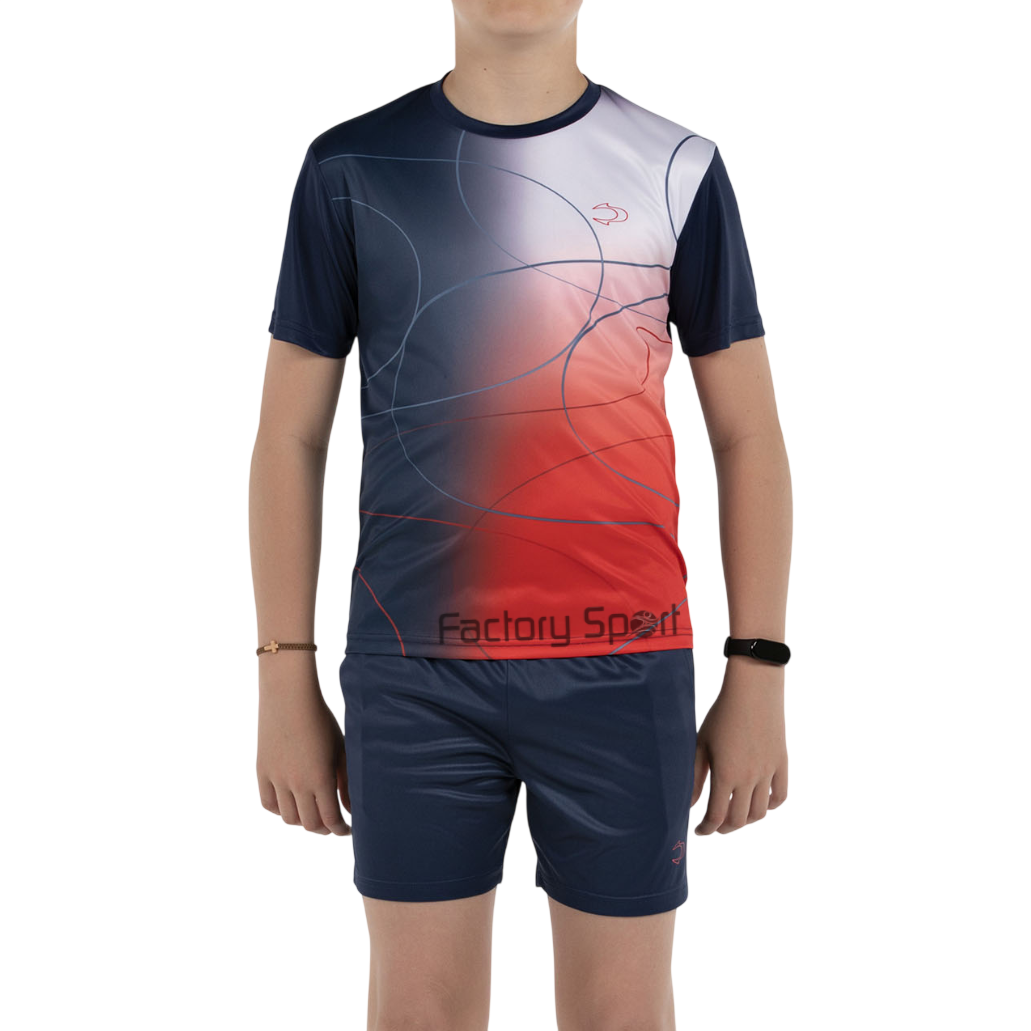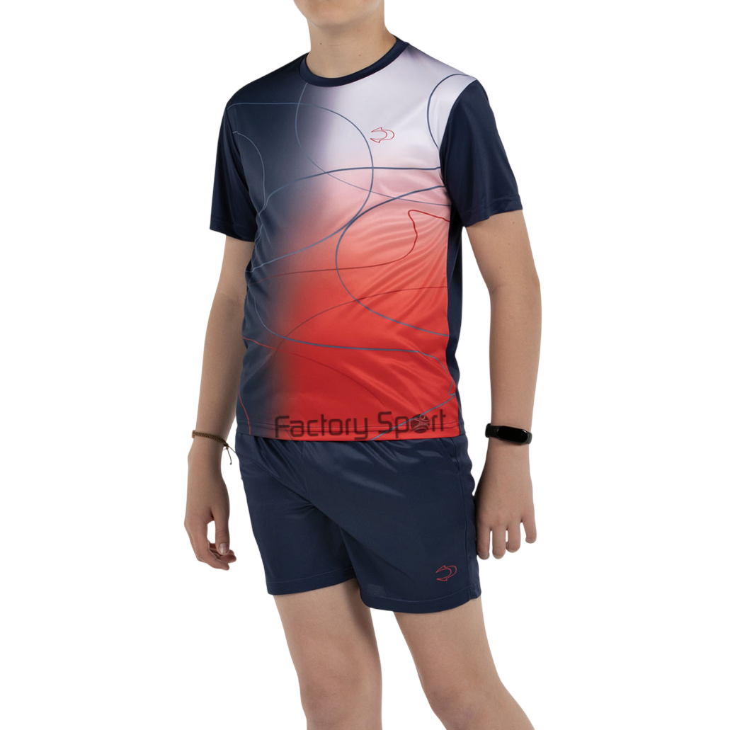 Set deportivo junior John Smith modelo BARRO en azul, ideal para entrenamientos y actividades físicas. Fabricado en poliéster transpirable, ofrece comodidad, ligereza y libertad de movimiento. Su diseño moderno con degradado azul-blanco y líneas abstractas aporta estilo y personalidad. Perfecto para jóvenes deportistas que buscan rendimiento y estética.