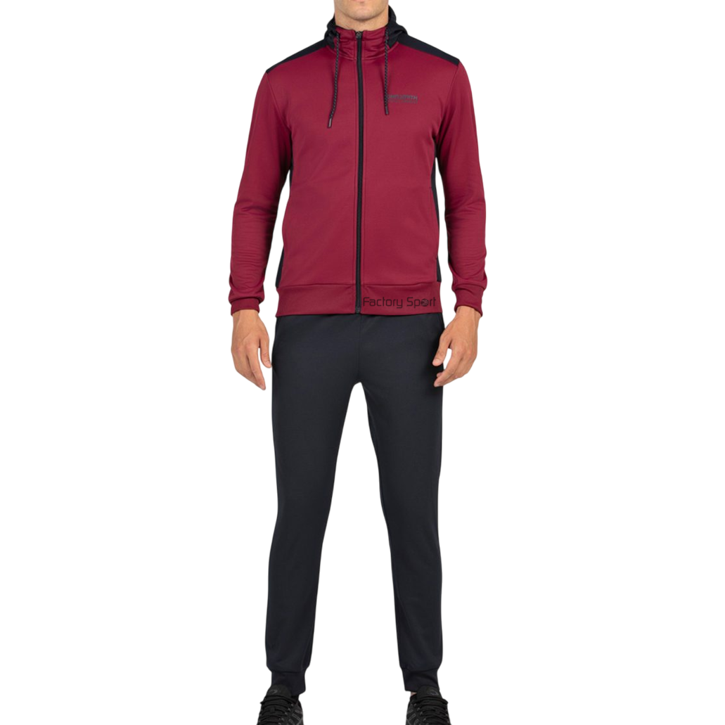 – Combina comodidad y diseño moderno con este chándal de interlock con interior perchado y capucha, perfecto para cualquier ocasión.