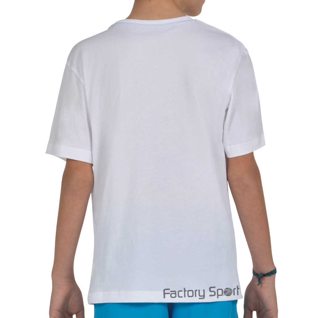 Camiseta de algodón de niño, en color blanco con logo de la marca en color azul