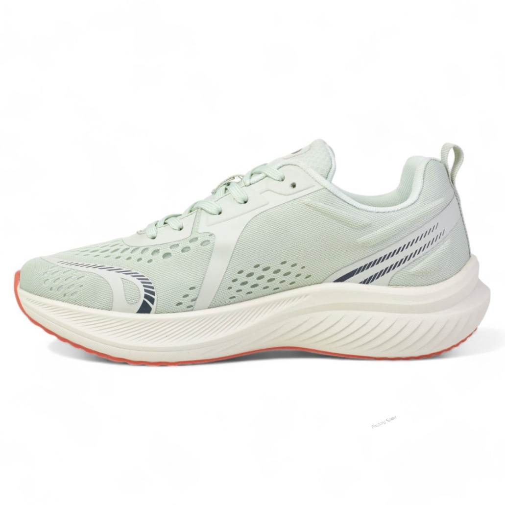 Zapatilla de running ligero. Destaca su corte de mesh abierto, para favorecer la transpiración. Cuenta con piezas de termosellado en la ojetera, puntera y talón, que evitan costuras y piezas innecesarias. Su suela de phylon nos ayuda a obtener el cushion adecuado, y a maximizar la ligereza de la zapatilla. Planta cosida al corte y unida directamente a la mediasuela.