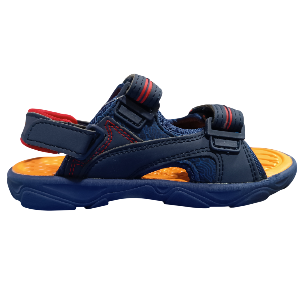 Chancla de color marino con suela interior en naranja y detalles en rojo, con goma elástica para mayor comodidad