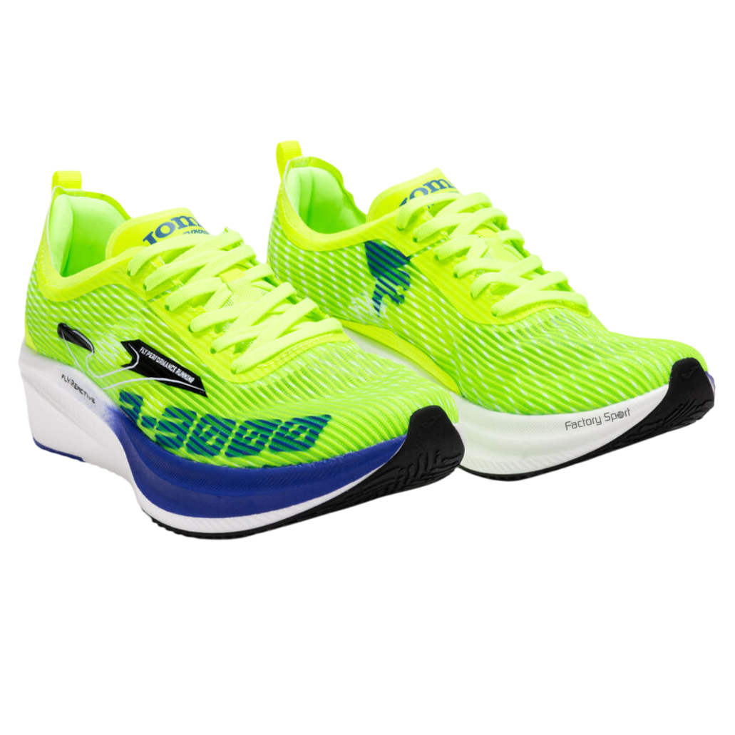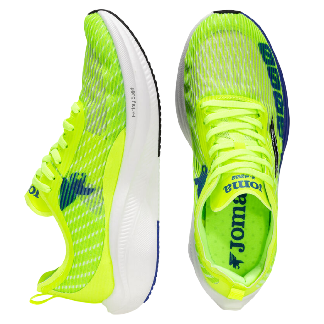 – Zapatillas de running con placa de fibra de carbono. La primera zapatilla para correr con placa de carbono de Joma sigue en la familia de las R’s como la más exigente.