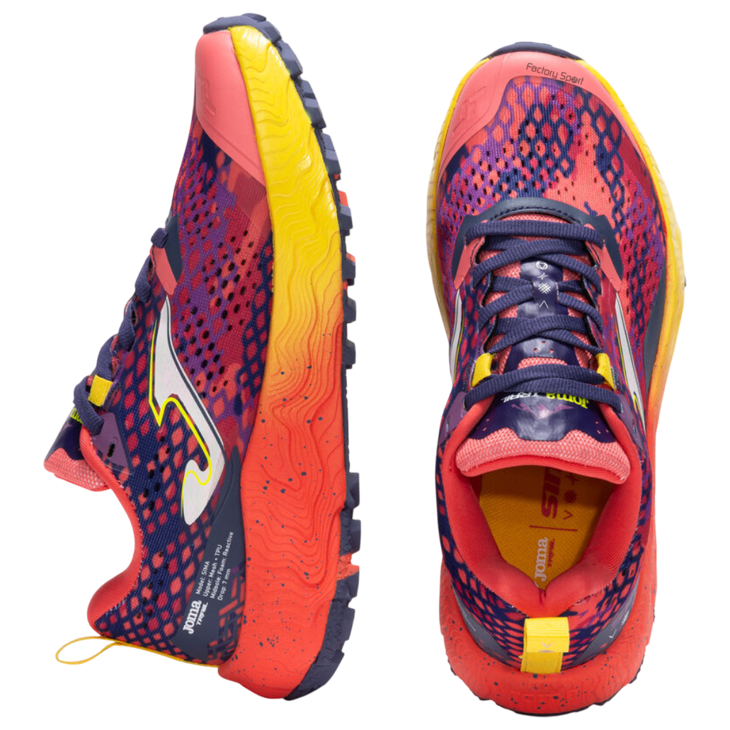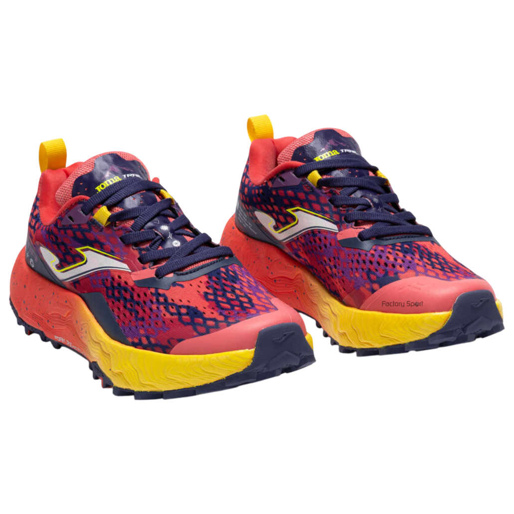 – Zapatillas de trail para mujer. El mítico modelo mixto para trail continúa como uno de los más rápidos y ligeros de Joma dentro de su categoría. Altas prestaciones en confort y amortiguación de los impactos gracias a la incorporación de tecnología de vanguardia.