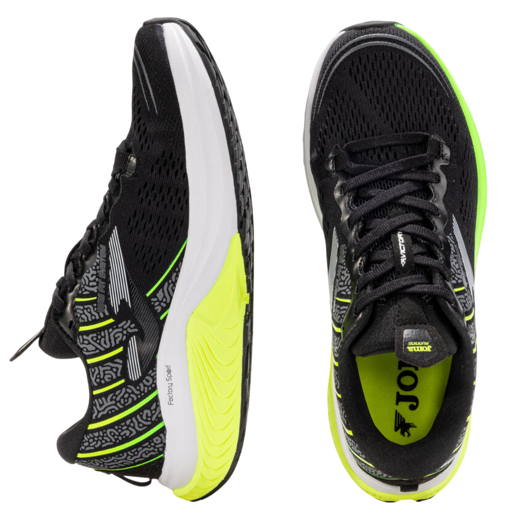 – Upper elaborado con mesh acabado en un elegante Jacquard personalizado con print. El sistema de ventilación VTS expulsa el sudor para que el pie se mantenga a temperatura constante. Sistema de ajuste termosellado JOMA SPORTECH en la cordonera.