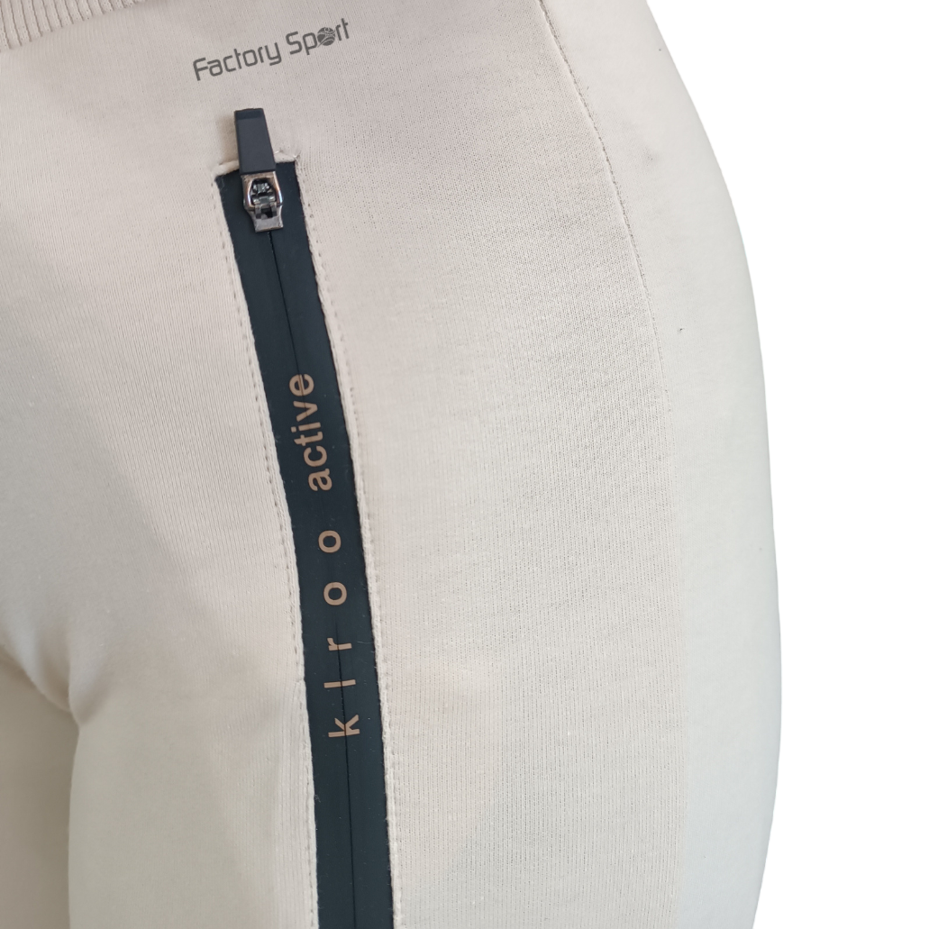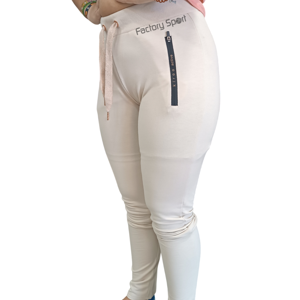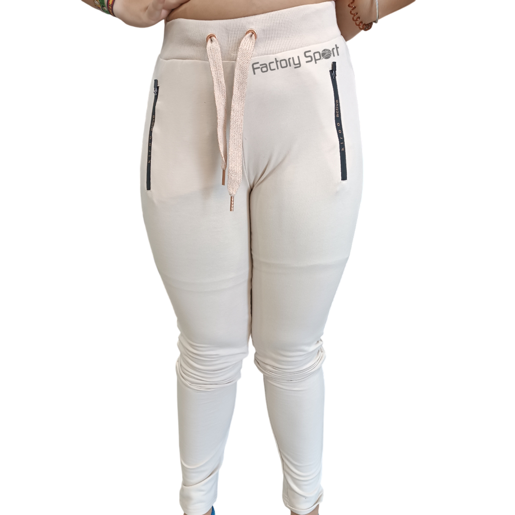 Pantalón de chandal de mujer en color beige con cintura ajustable con cordones, con cremallera en los bolsillos
