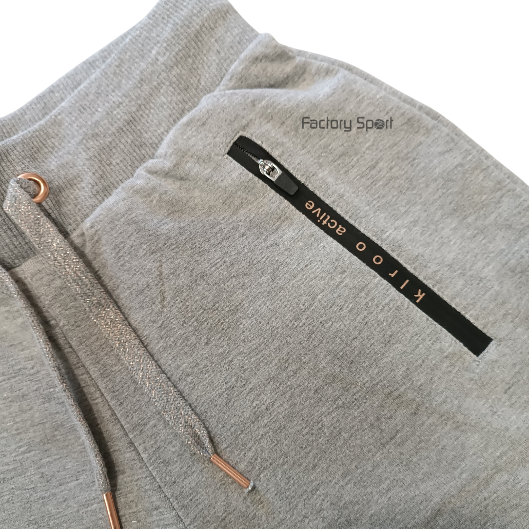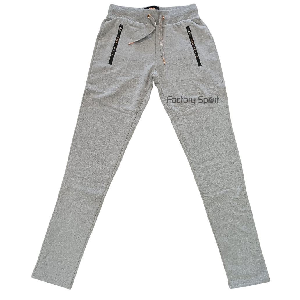 Pantalones elásticos largos para mujer en color gris vigoré de algodón, cuentan con cremallera en los bolsillos, además de cintura ajustable