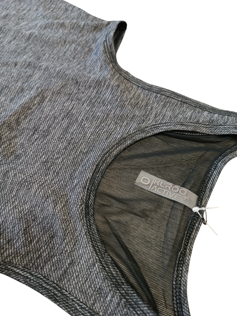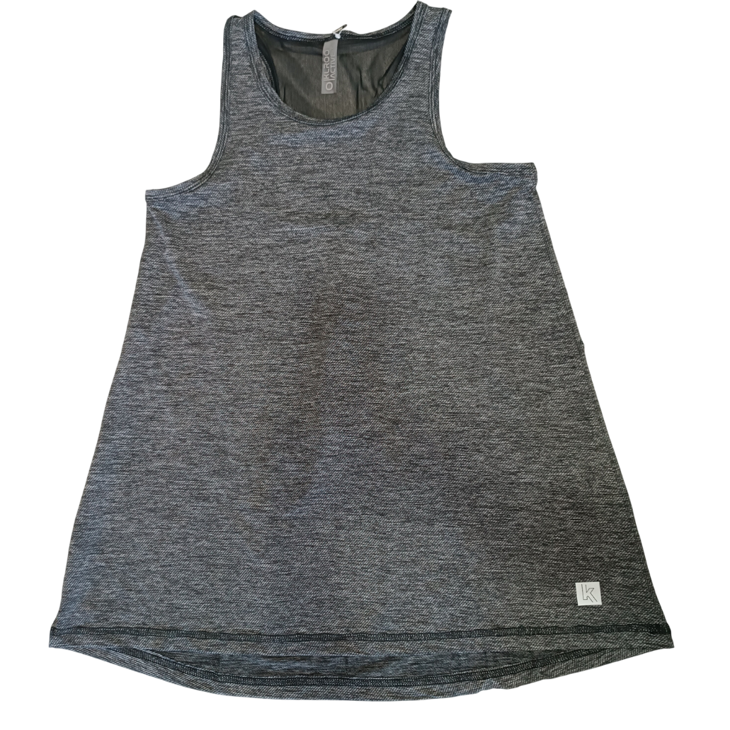 Camiseta tirantes mujer con tejido traspirable en color gris oscuro, fresca. Lleva el logo en la esquina inferior.