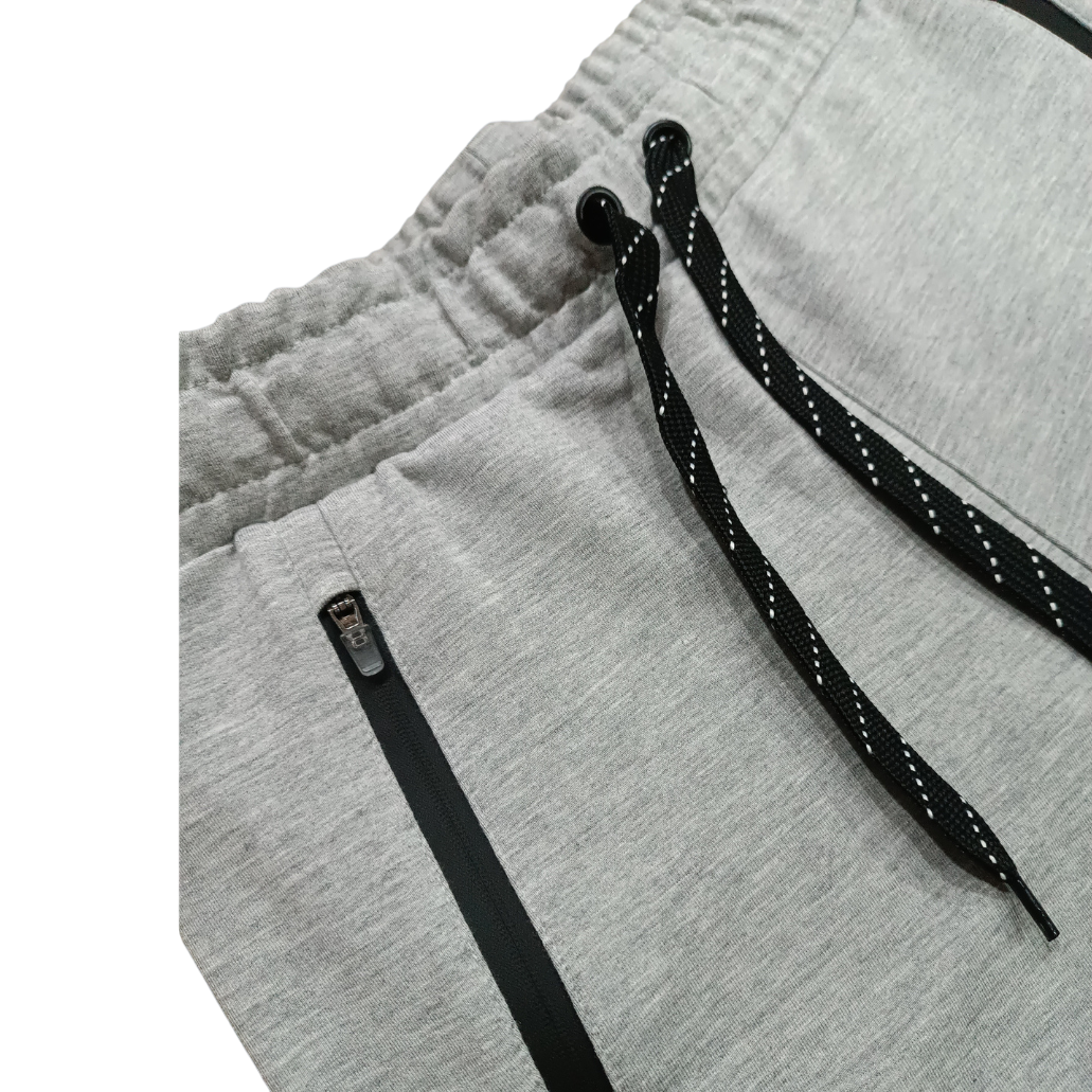 Pantalón corto de hombre, color gris, ajustable en la cintura y con bolsillos con cremalleras