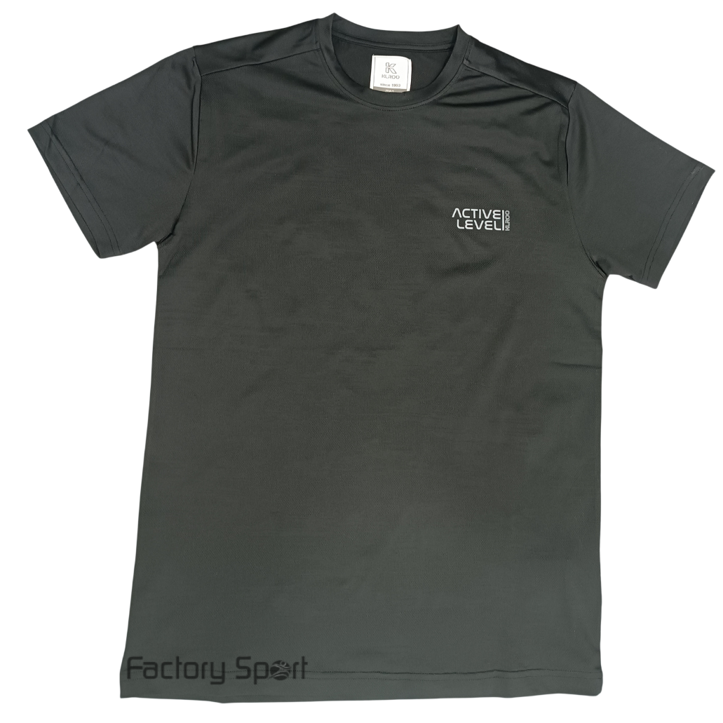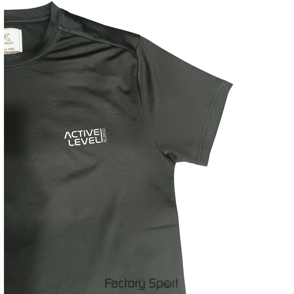 Camiseta en color negro para hombre. Fabricada en poliester y spandex. De tejido fresco y de secado rápido.
