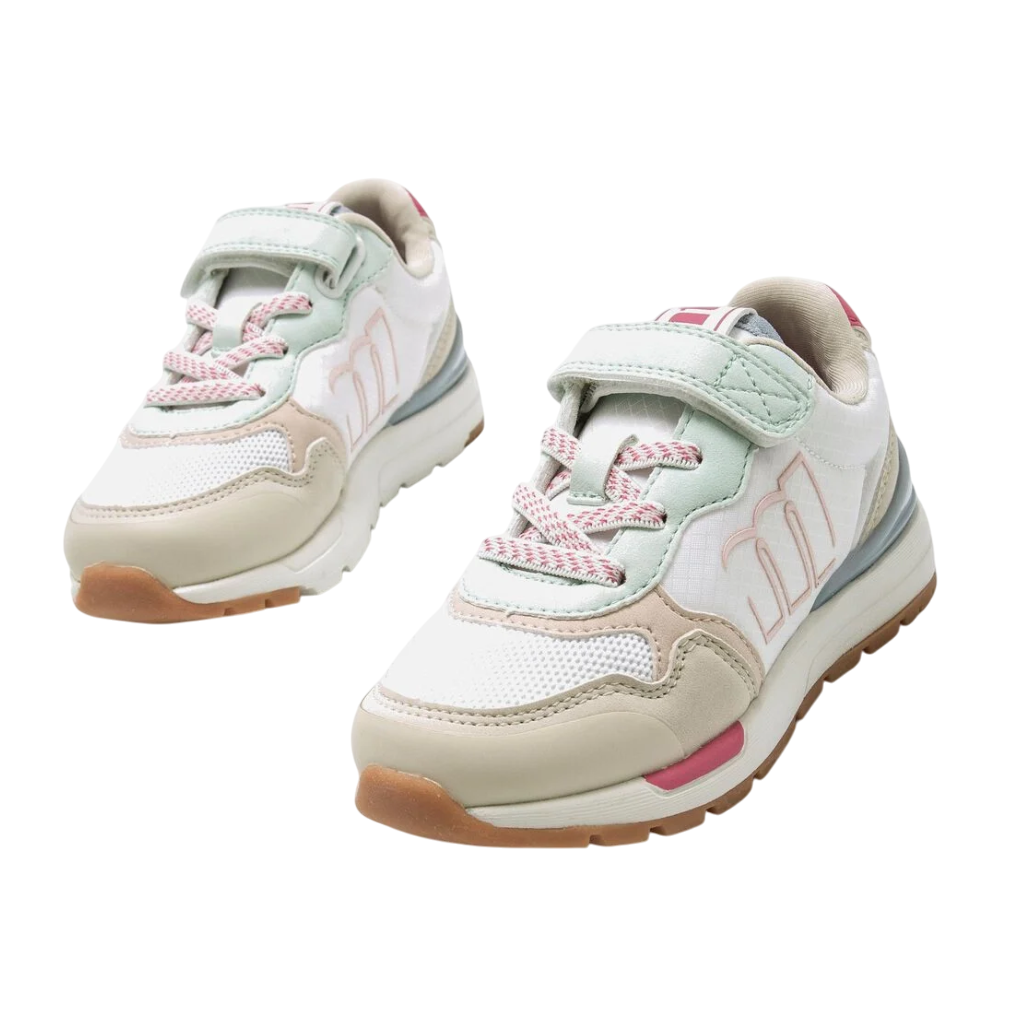 Zapatillas deportivas blancas Compact para niños, de Mustang Kids. Su diseño alegre y colorido, perfecto para el día a día. La combinación de tonos pastel con colores más intensos añade un toque dulce y divertido, mientras que la suela de goma proporciona comodidad. Su cierre es adherente. ¡Diviértete con compact de Mustang!