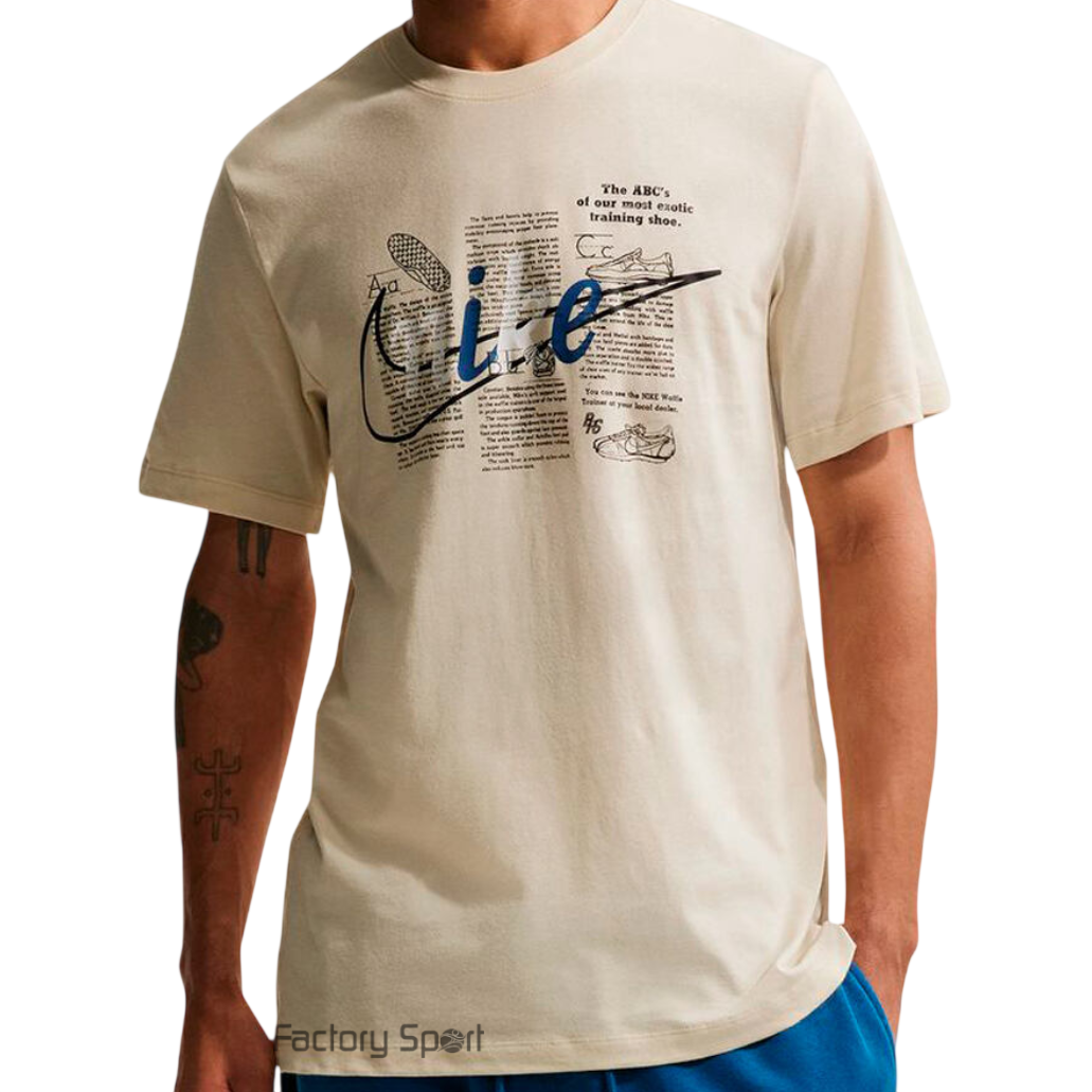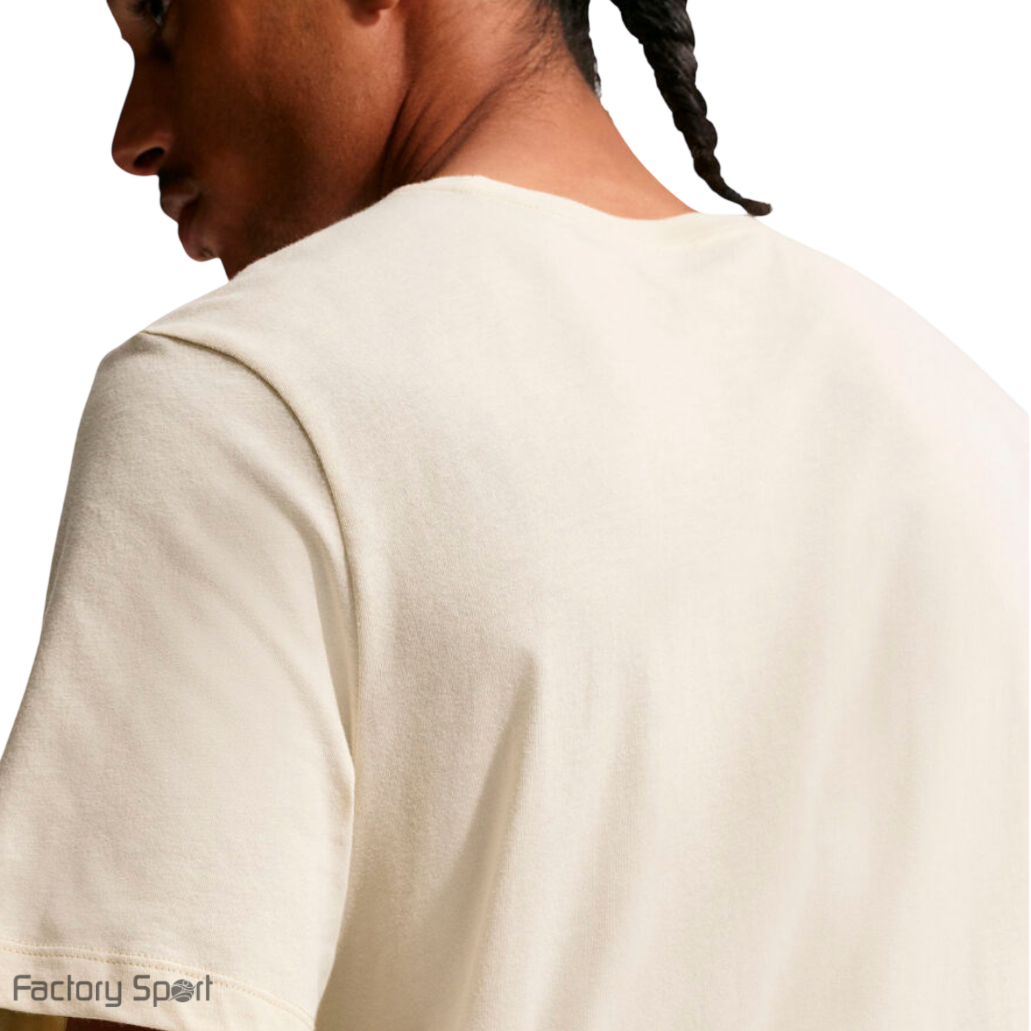 Camiseta Nike Sportswear en color beige. Fabricada en 100% algodón, se caracteriza por su transpirabilidad y suavidad al tacto, lo que proporciona una sensación de frescura durante todo el día.