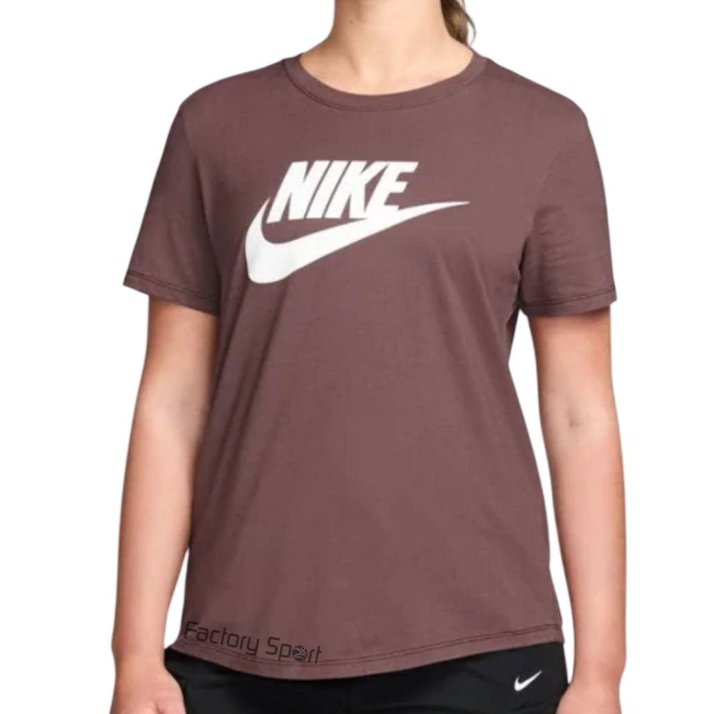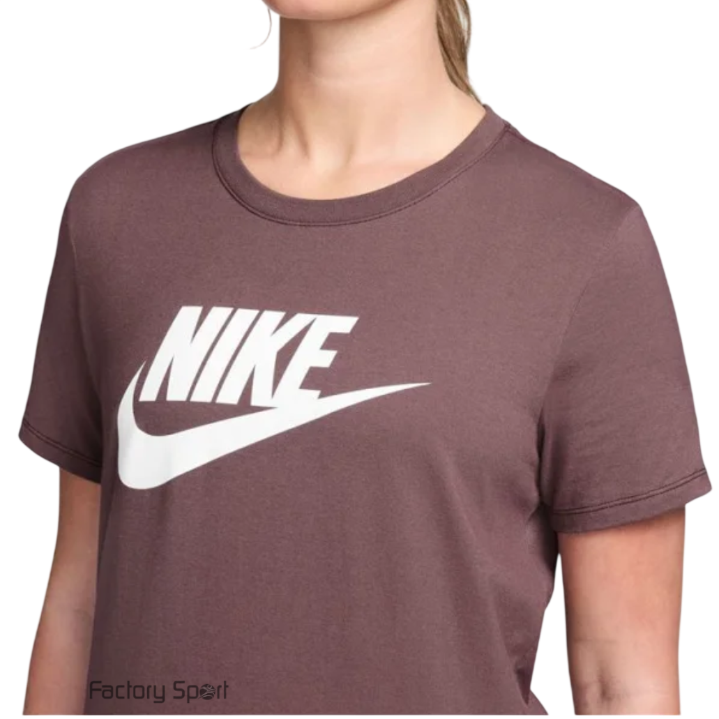 Camiseta Nike Sportswear para mujer en color chocolate para quien busca estilo y comodidad. Su composición de algodón y poliéster proporciona una agradable sensación al tacto.