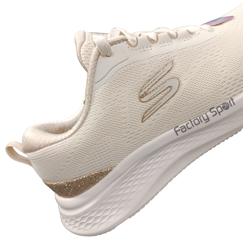 Zapatillas de deporte mujer en color natural con detalles en oro, con cordones
